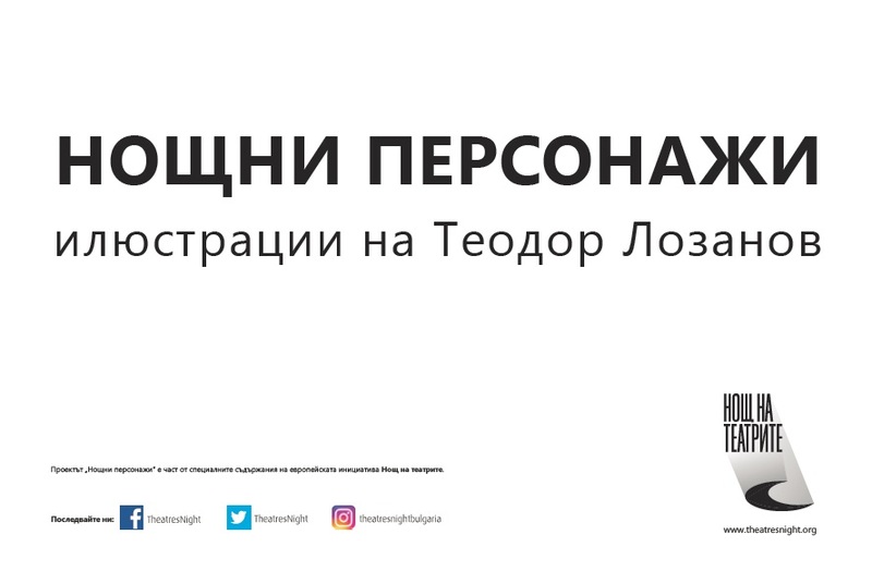 Илюстраторът Теодор Лозанов нарисува посланиците на шестата Нощ на театрите в проекта „Нощни персонажи“. За първа година проектът освен чрез фотографии ще представи лицата на инициативата с рисунки.