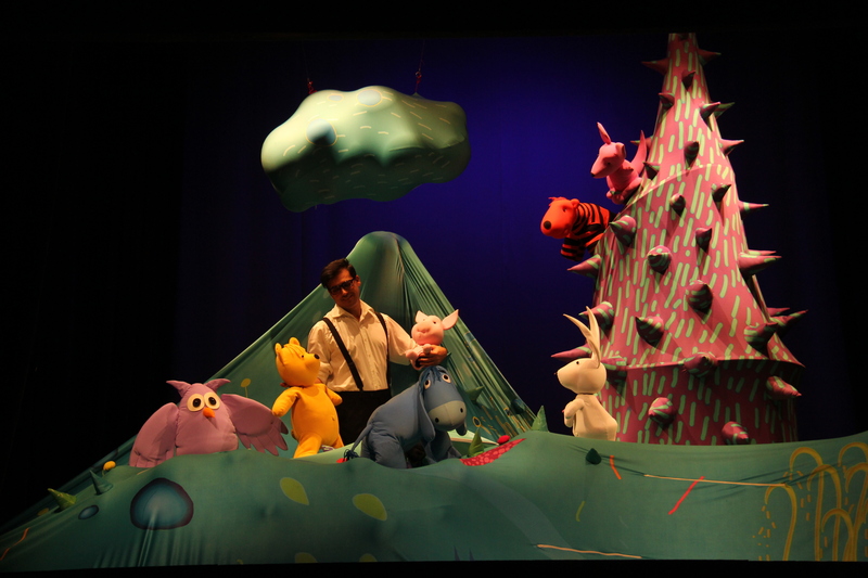 В спектакъла „Мечо Пух” порасналият Кристофър Робин се завръща отново, за да се срещне с любимата си играчка Пух мечето. Но се случва нещо необикновено – играчката оживява и го повежда в спомените от детството. Там той среща своите приятели – Прасчо, Заека, Тигъра, Ру, Бухала и тъжния Йори, които му припомнят колко хубаво е да се прави нищо в омагьосаната гора, където всички са естествени, добронамерени, обичливи.